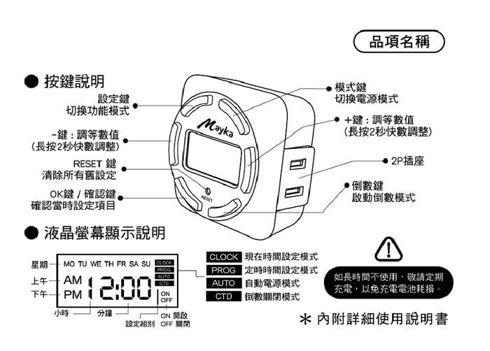 ◆商品名稱:明家24小時LCD數位節能定時器 2PIN插座