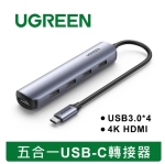 綠聯UGREEN 五合一USB-C轉接器 4KHDMI 輕巧便攜款 20197