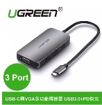 UGREEN綠聯 (USB-C轉VGA多功能轉接器 3 Port USB3.0+PD快充) (50210)